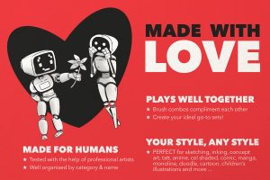 Perfect for main/detail lines across a range of styles, including ink, comic, anime, tattoo, concept art, manga, cartoon, doodle, monoline, children’s illustrations – everything!